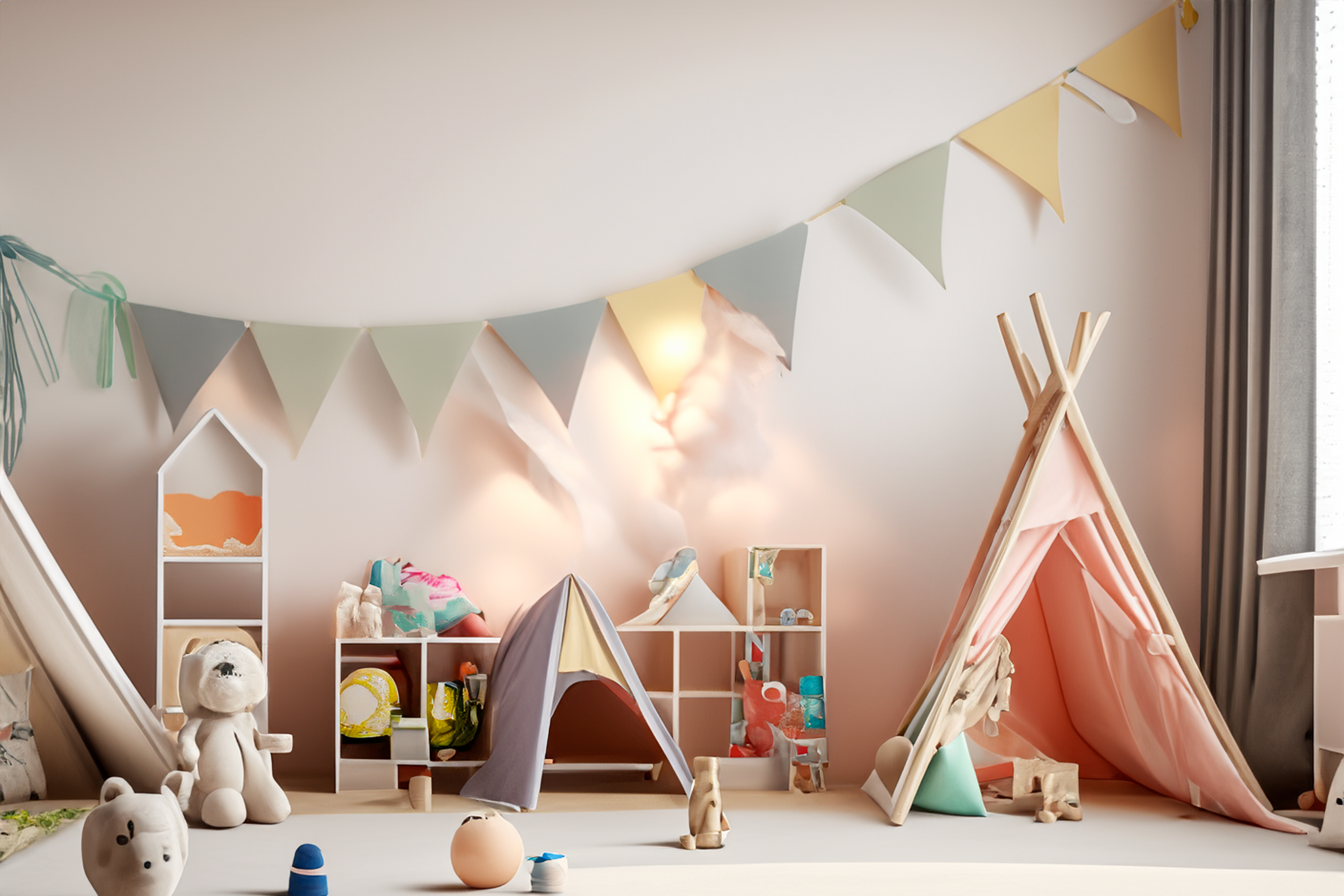 Intégrez des espaces de jeu comme des tipis, des cabanes ou des tentes dans la chambre pour offrir à votre enfant un endroit où il peut laisser libre cours à son imagination et à sa créativité. Ces structures peuvent aussi servir de cachette ou de coin lecture.